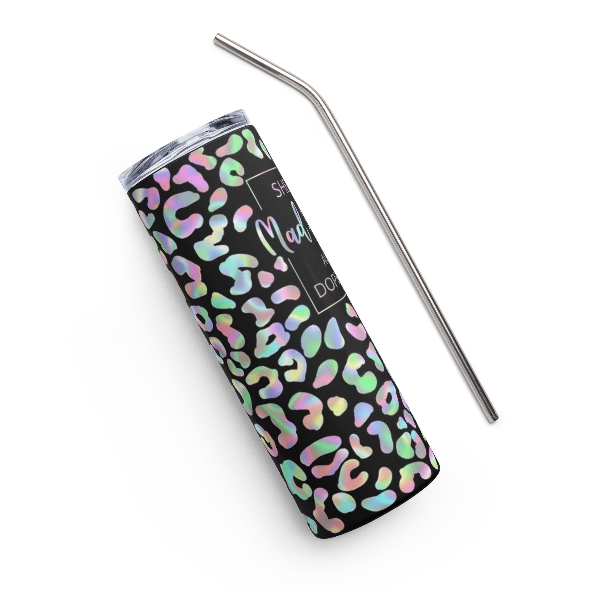 Enjoy hot or cold drinks on the go with this stylish stainless steel tumbler! This reusable tumbler with a metal straw is a perfect combo for hot or cold drinks at any time of the day. Perfect for any Boss Lady!